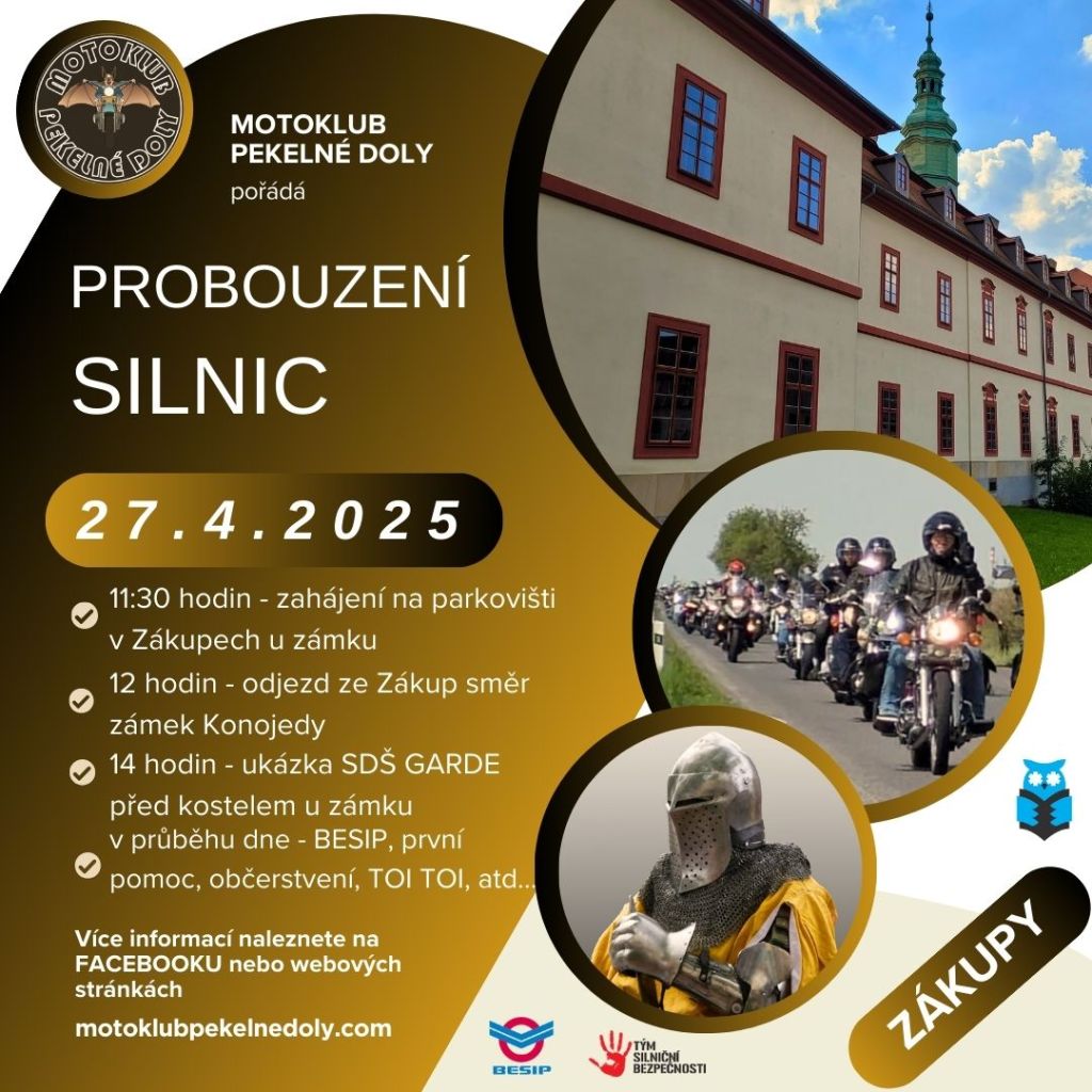 PROBOUZENÍ SILNIC tj. zahajovací JÍZDU ze Zákup (tato zahajovací jízda nesouvisí s otevřením jeskyní Pekelné doly).
