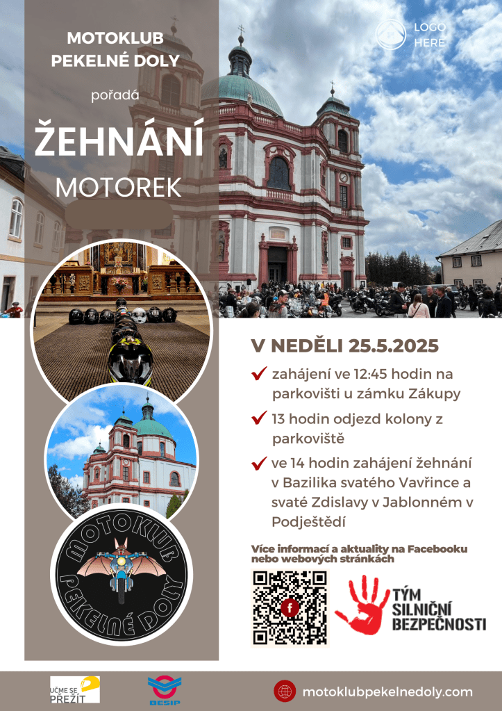 - Zveme Vás na žehnání motorek v Bazilice svatého Vavřince a svaté Zdislavy v Jablonném v Podještědí.
